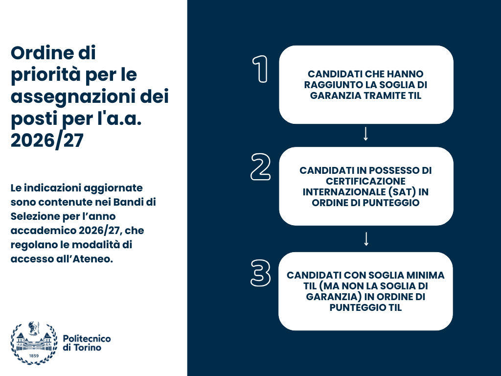 Calendario test di ammissione (TIL) anno accademico 2026/27